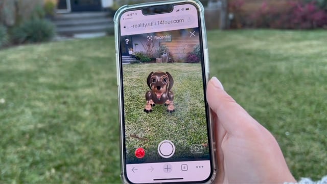 When we finally settled on a design for Robo Dog, it was swiftly apparent that we should figure out a way for people to play with him outside the 2D world. We designed a mobile web AR app using the CG model from the actual spot. The experience links out to Kia’s pet adoption grants page.